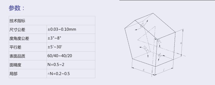產(chǎn)品介紹: 五角棱鏡是具有90° 光線偏差及右旋性圖像的五面棱鏡。鍍有UV增透膜的產(chǎn)品在反射面也 鍍有鋁膜來提